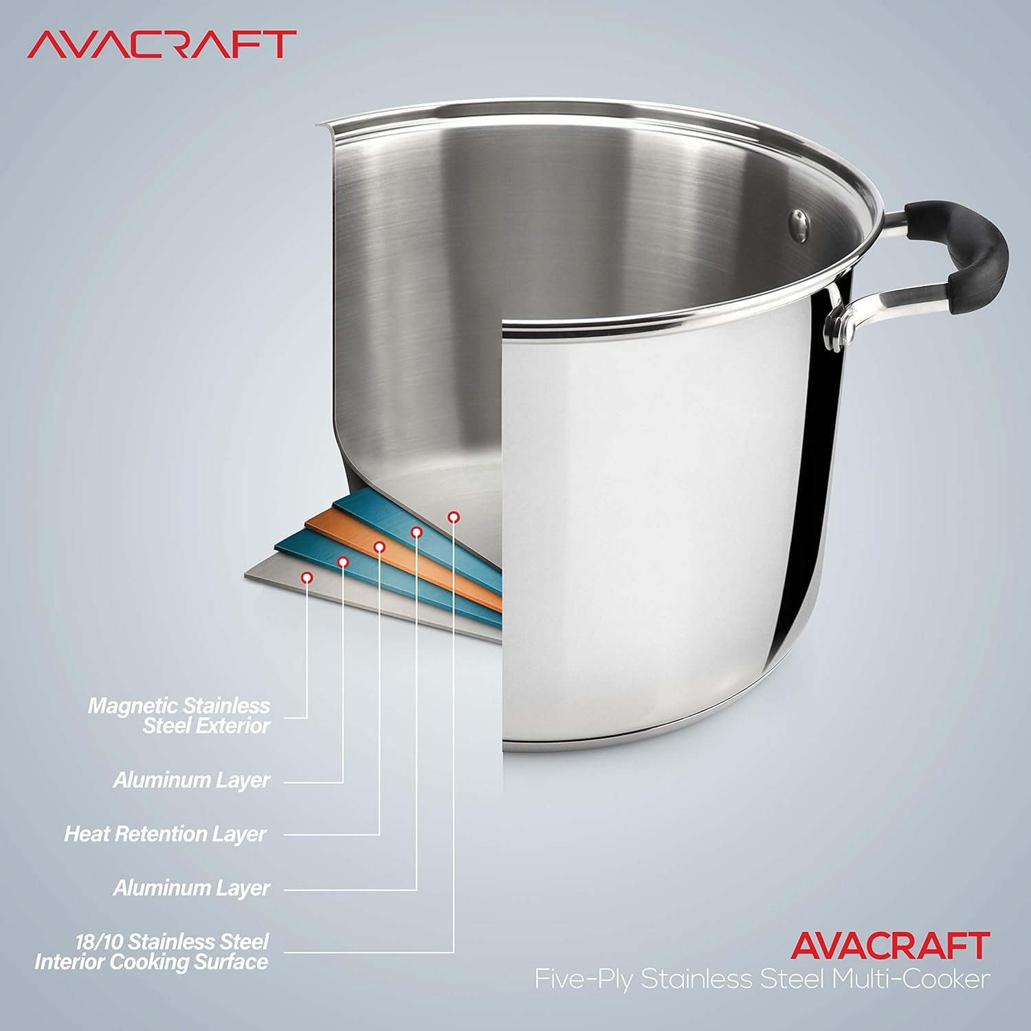 Designed with advanced safety features, this 7-quart stock pot set features a glass lid that's both shatterproof and heat-resistant. The handles are coated with silicone for a non-slip grip, ensuring a secure and comfortable handle, even during prolonged use. The strain pot insert allows for quick and efficient draining of pasta, eliminating the need for a separate colander. The 18/10 stainless steel ensures long-lasting durability and resistance to corrosion. The pot set is compatible with various cooking surfaces, making it a versatile addition to your kitchen.